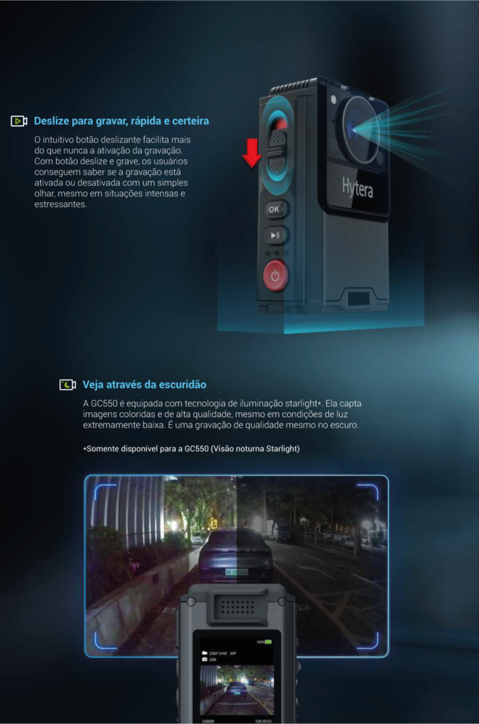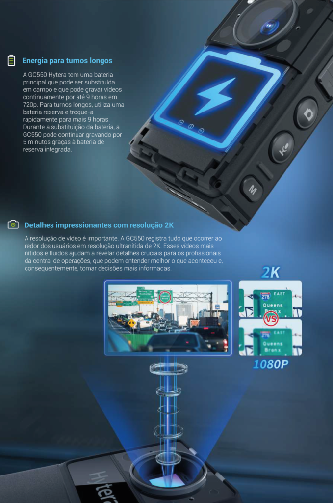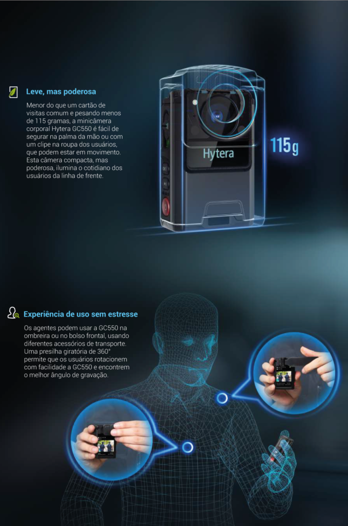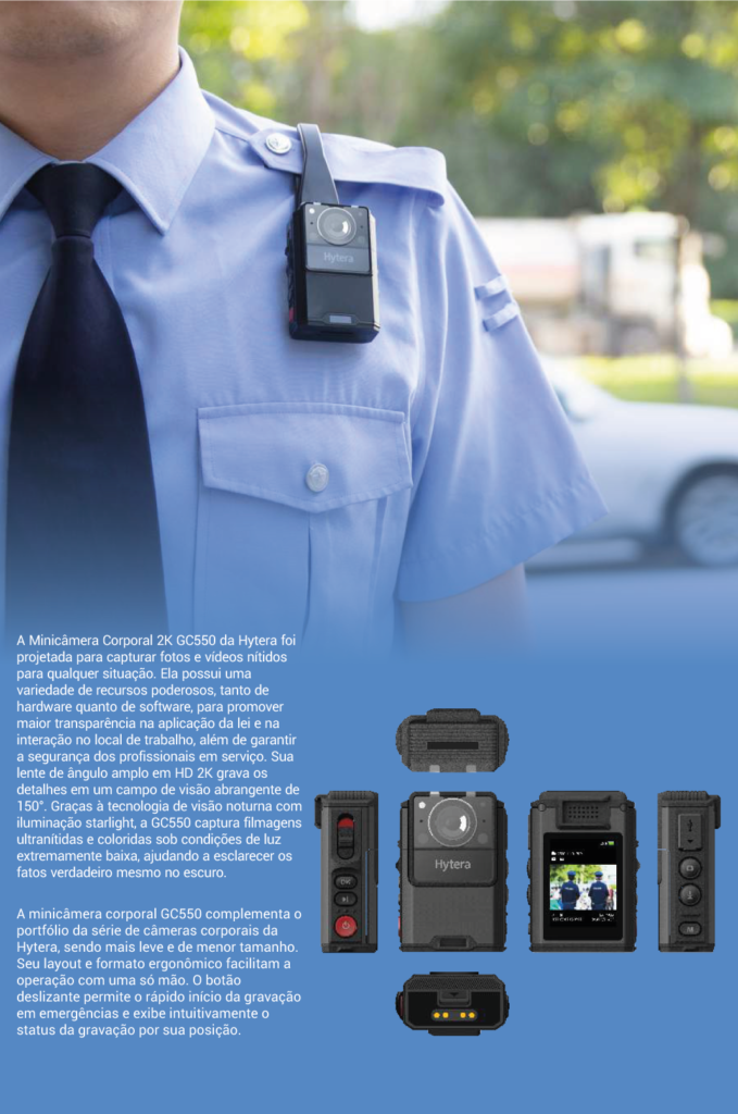 A Minicâmera Corporal 2K GC550 da Hytera foi projetada para capturar fotos e vídeos nítidos para qualquer situação.