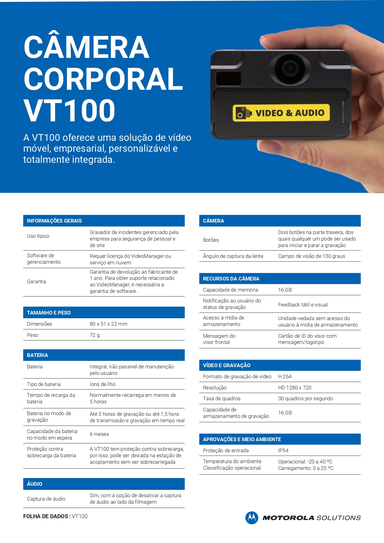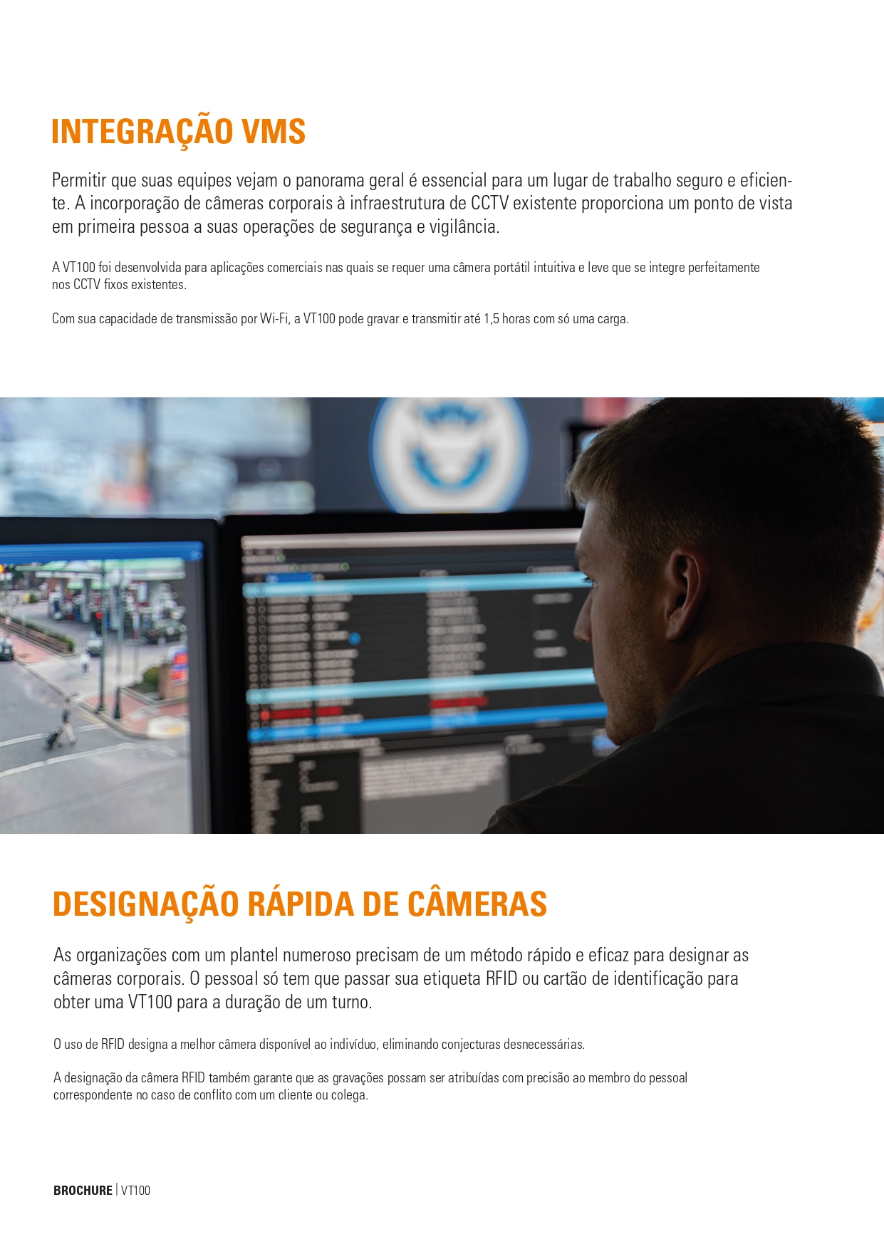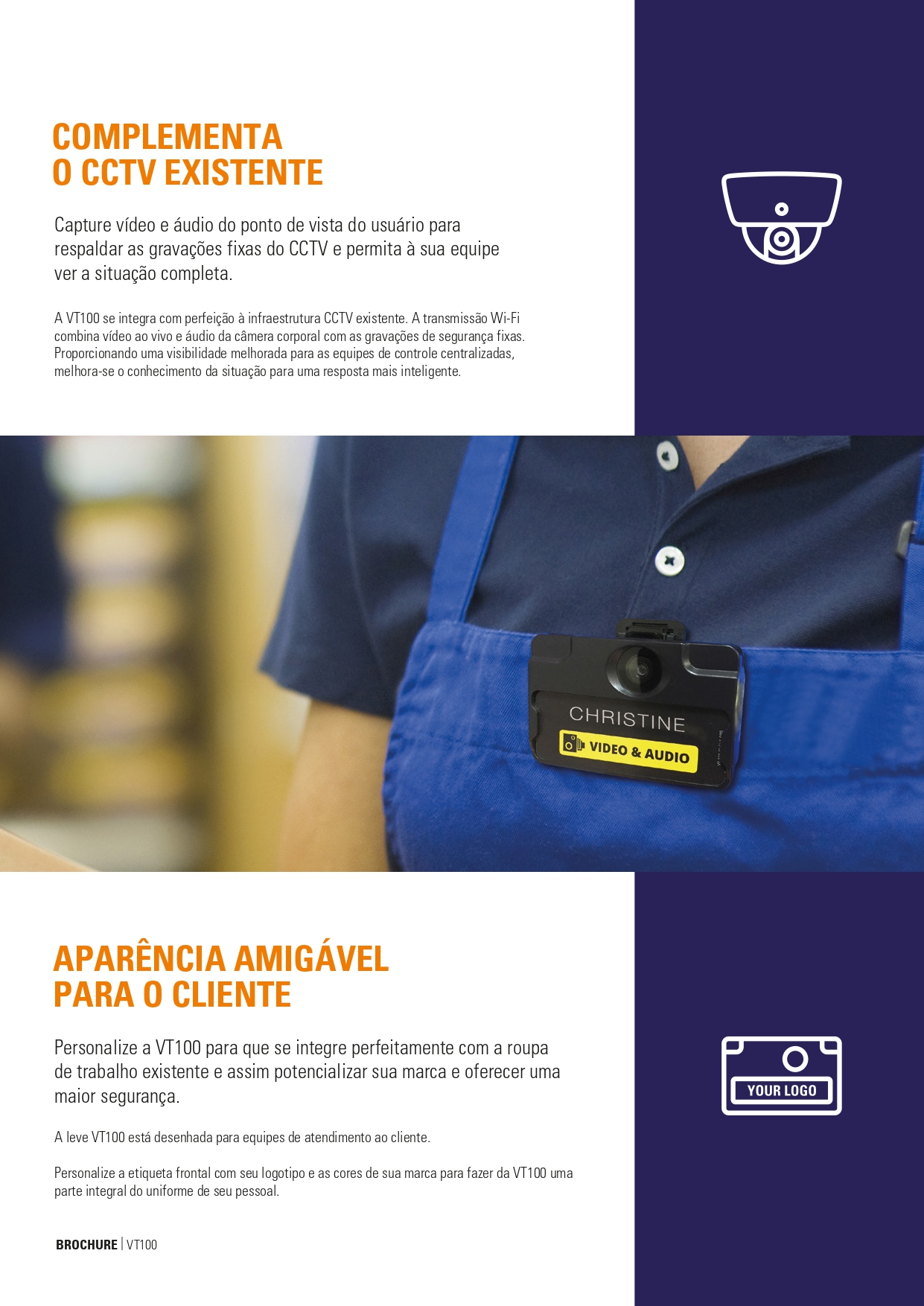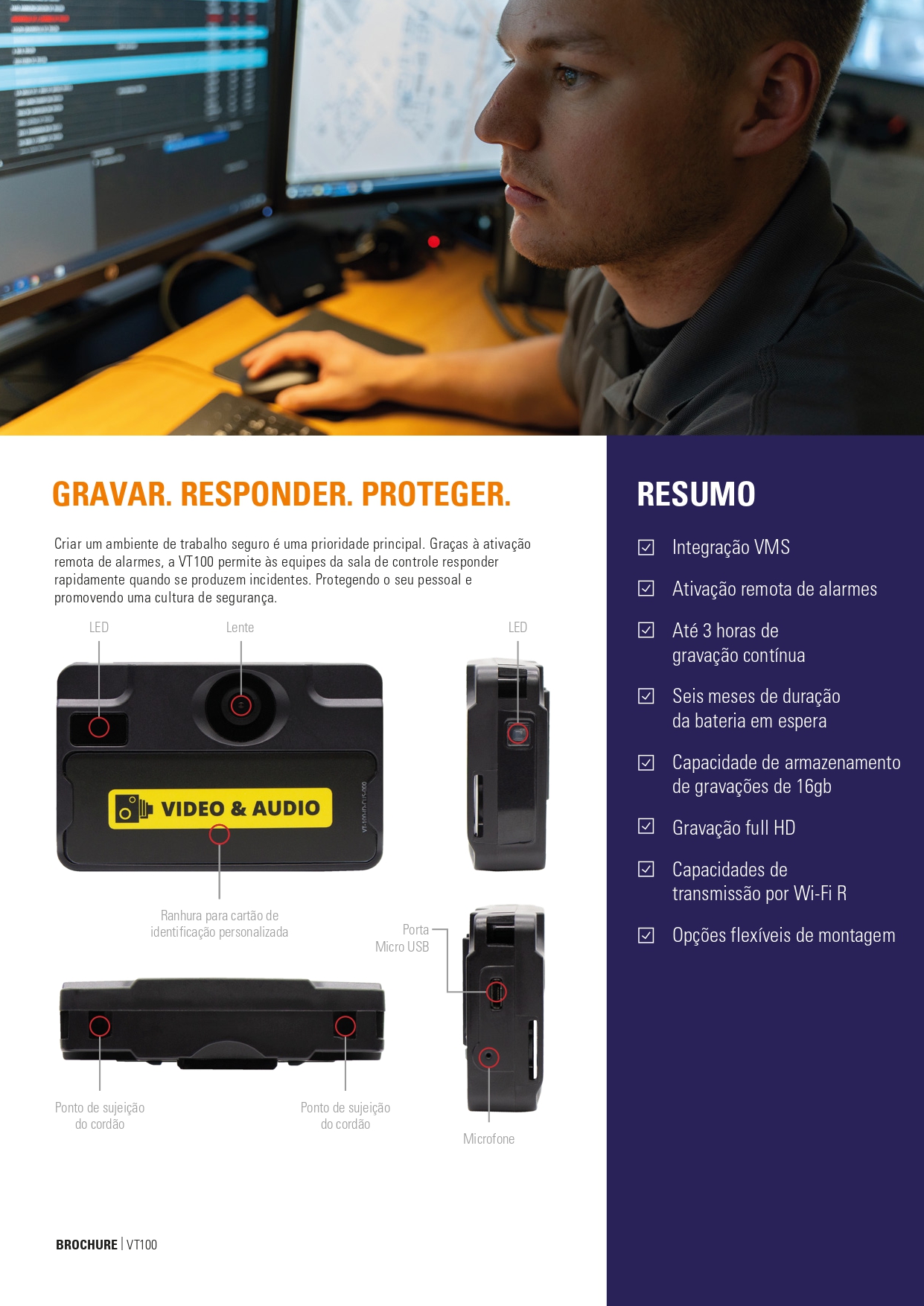 A VT100 proporciona uma solução de vídeo móvel empresarial personalizável e totalmente integrada.