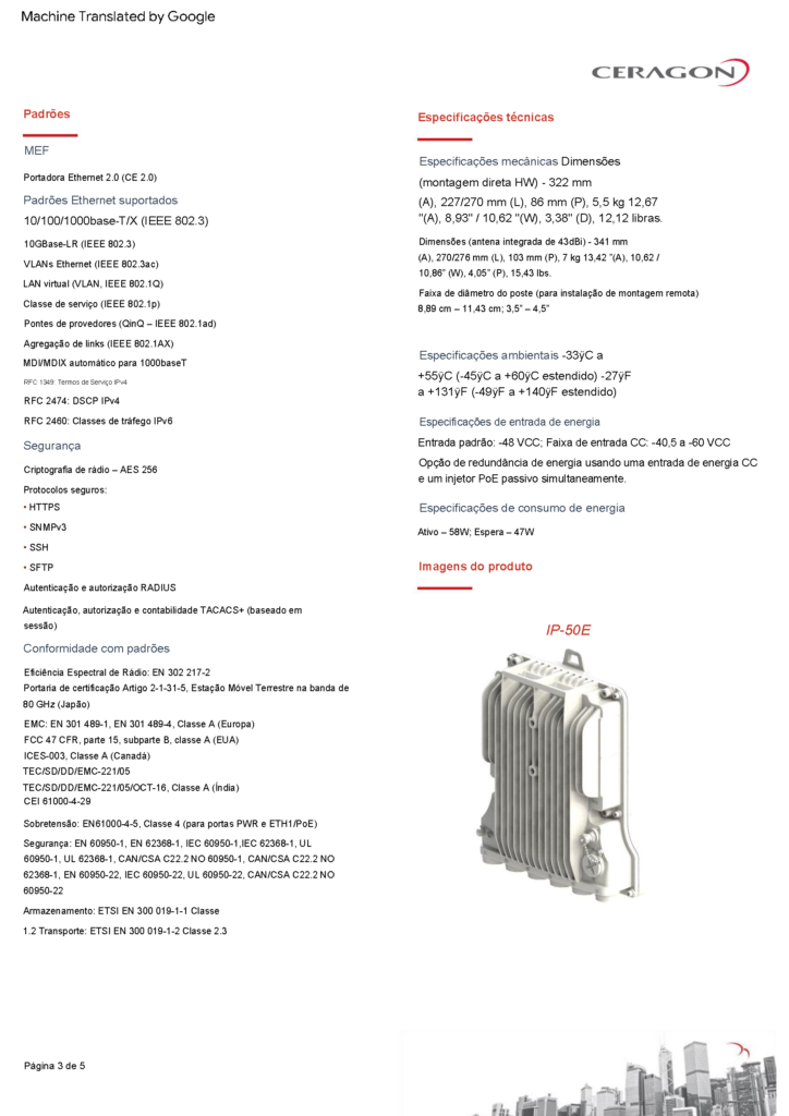 O IP-50E também permite alcance estendido da banda E sem comprometer a disponibilidade, graças à sua capacidade multibanda exclusiva. Usando ligação de operadora de camada 1, o IP-50E permite combinar essa operadora de alta capacidade com qualquer conexão adicional de micro-ondas, fibra ou linha alugada, garantindo assim que sua oferta de serviço de alta prioridade atenda à meta de SLA.