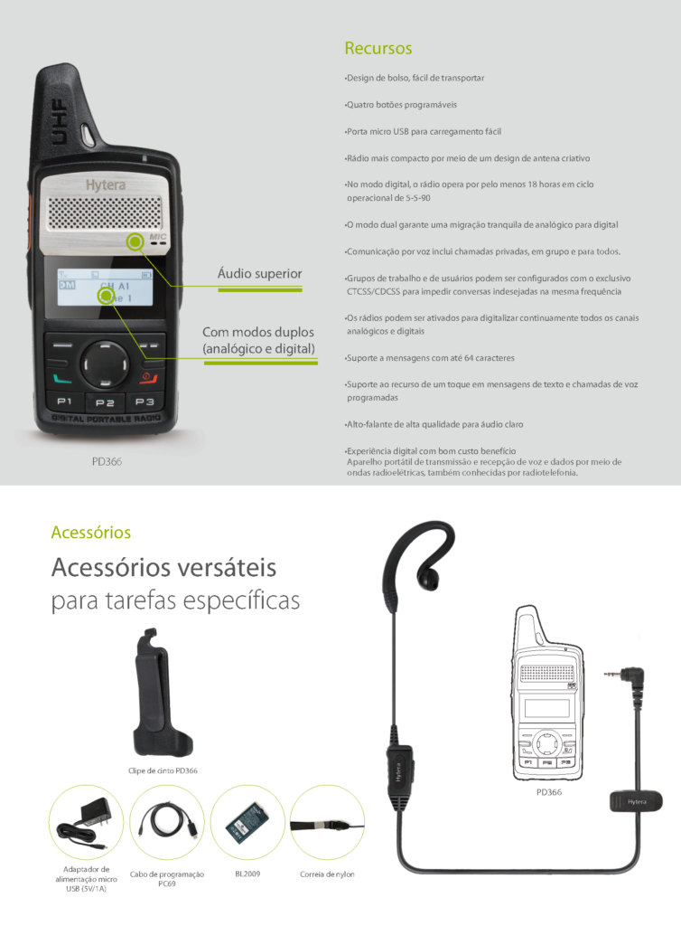 – Design de bolso– Carregamento micro USB– Com modos duplos (analógico e digital)– Áudio superior