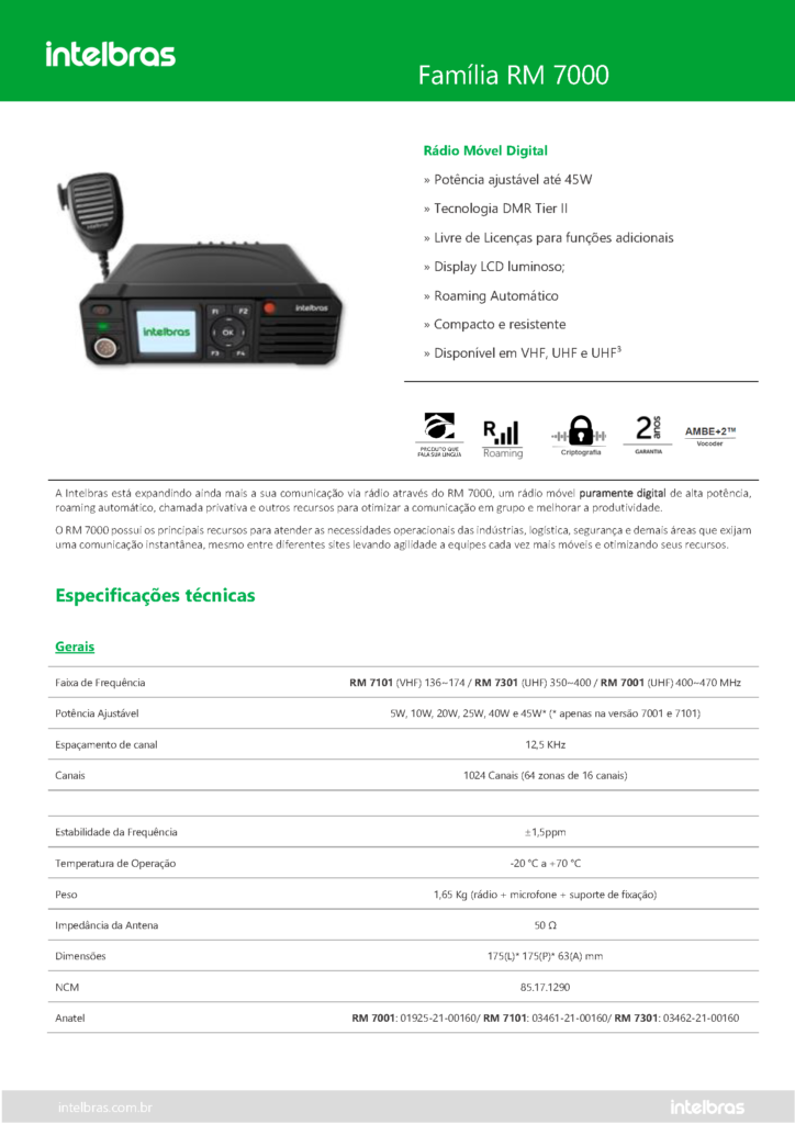 A Intelbras está expandindo ainda mais a sua comunicação via rádio através do RM 7000, um rádio móvel puramente digital de alta potência, roaming automático, chamada privativa e outros recursos para otimizar a comunicação em grupo e melhorar a produtividade.