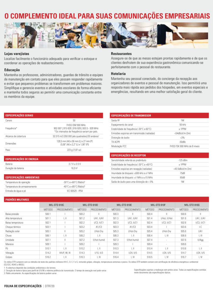 Sua equipe pode se comunicar e resolver problemas rapidamente e lidar com situações inesperadas – melhorando a eficiência operacional e a satisfação do cliente. Os rádios da Série DTR da Motorola Solutions são o complemento ideal para sua empresa, com todas as vantagens da comunicação digital confiável, privada e sem interferências.