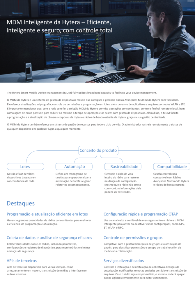 Oferece ao usuário uma experiência de comunicação realmente unificada. A diversidade de aplicativos e a segurança de dados de alto nível permitem usar o rádio para lidar calmamente com situações críticas e aumentar a cooperação, possibilitando uma comunicação fluida.
